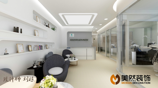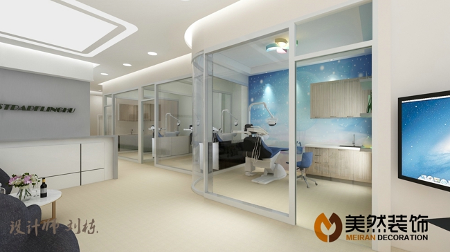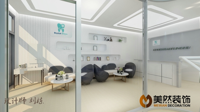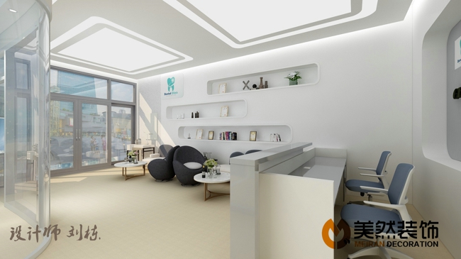 此牙科診所位于涿州錦繡范陽底商,建筑面積230平米,共分候診區(qū)、兒童診室、VIP診室,普通診室,種植室、消毒間,牙模操作間等,配置比較齊全,檔次較高,由涿州美然裝飾客服部經(jīng)理劉棟親自操刀設(shè)計。